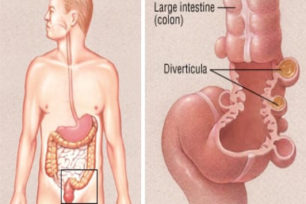 Diverticula are formed within the muscular wall of the intestine through the weakened points. This condition is common with old age and low-fiber diets. In old age, the muscle walls naturally become weak. With a low-fiber diet, the constipation occurs. When you are constipated, the repeated straining and the presence of hard stool within the intestine will increase the pressure within the intestine, it will result in the formation of the outward sac or pouch (diverticula) within the weakened muscle walls.